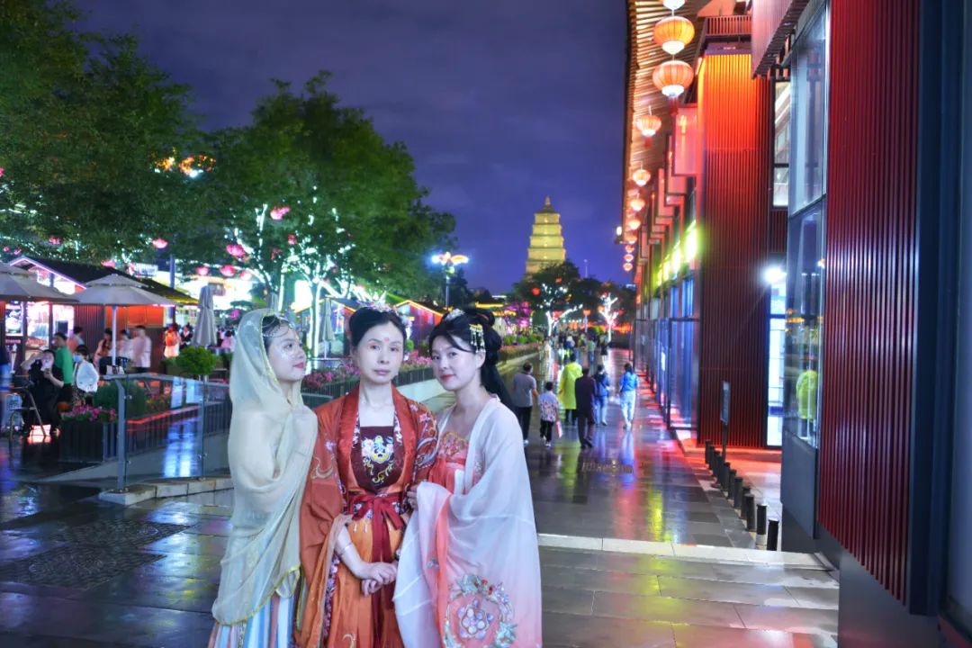 除此之外,大唐不夜城也是西安的一大特色。在這里,我們仿佛穿越回唐朝,感受到了大唐文化的繁華和輝煌。我們湘儀的女將們也紛紛換上古裝,赴一場(chǎng)穿越千年的邀約。