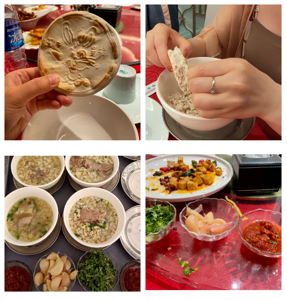 同盛祥飯莊以經(jīng)營(yíng)獨(dú)具民族特色的牛羊肉泡饃而馳名中外。百年老字號(hào)【同盛泡饃】被譽(yù)為“同盛祥天下第一碗”,其牛羊肉泡饃制作技藝被列入國(guó)家級(jí)非物質(zhì)文化遺產(chǎn)保護(hù)名錄?!巴ⅰ倍忠苍⒁馔耐拢睒s昌盛。一壺茶一桌友,共坐閑話掰泡饃,這也是西安“慢”的儀式。